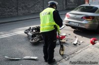 Do zdarzenia doszło około 8.00 w Bielsku-Białej na ul. Komorowickiej. Motorowerzysta nie zachował bezpiecznej odległości od jadącego przez nim pojazdu i najechał na jego tył. Ranny kierowca jednośladu został przewieziony do szpitala. Badanie stanu jego trzeźwości dało wynik blisko 2,5 promila alkoholu. Szczegółowe okoliczności tego zdarzenia ustalają bielscy policjanci.