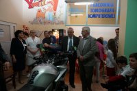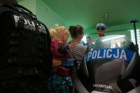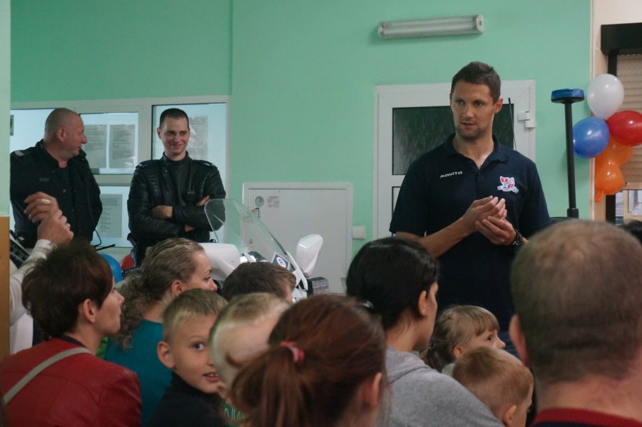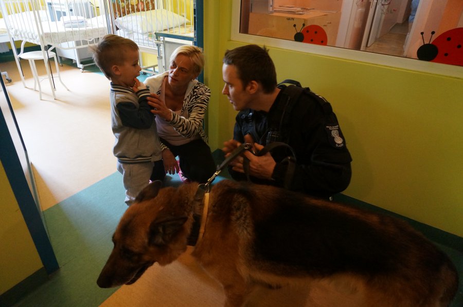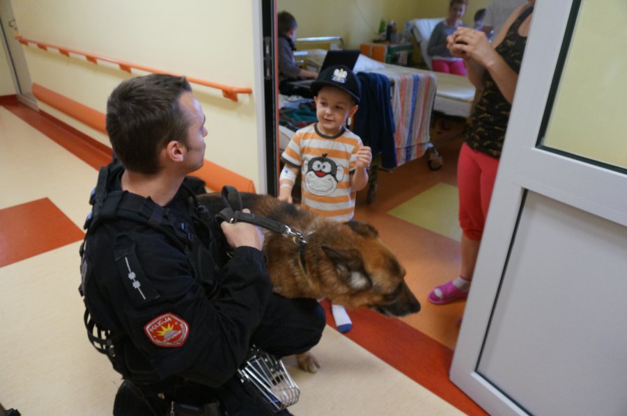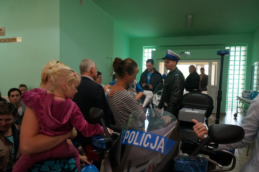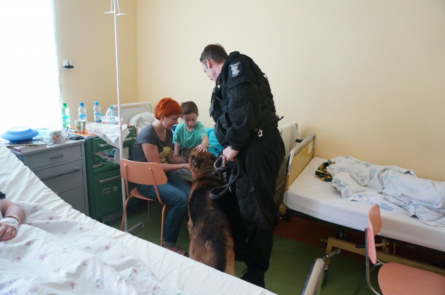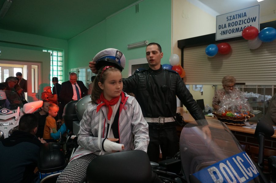 Wspólnie z mundurowymi maluchów odwiedzili także piłkarze klubu TS Podbeskidzie, którzy przeprowadzili konkursy i zabawy. Każde dziecko mogło zasiąść za kierownicą służbowego motocykla. Wszyscy mogli włączyć sygnały dźwiękowe. Swoje umiejętności zaprezentował też pies służbowy Ares, który wzbudził ogromne zainteresowanie maluchów. Dzieci przypomniały sobie, jak zachowywać się w kontakcie z obcymi zwierzętami i jak prawidłowo zajmować się własnymi czworonogami. Stróże prawa zachęcali najmłodszych do jazdy w fotelikach i zapinania pasów. Maluchy chętnie i prawidłowo odpowiadały na pytania mundurowych a w czasie zabawy rozmawiały z policjantami o swoim bezpieczeństwie w ruchu drogowym i codziennym życiu oraz o szczegółach policyjnej służby. Dzieci otrzymały elementy odblaskowe i drobne upominki. Policjanci pamiętali także o małych pacjentach, którzy z powodu choroby nie mogli zejść do izby przyjęć. Odwiedzili ich osobiście w salach, gdzie rozmawiali, dodając pozytywnej energii w walce z chorobą.