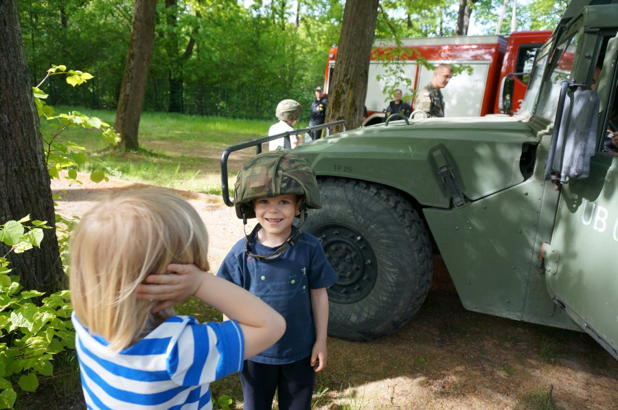 Dzieci dowiedziały się, że aby zostać policjantem lub żołnierzem trzeba przede wszystkim być dobrym człowiekiem, ale też dobrze się uczyć, słuchać opiekunów i działać w grupie. Rozmawiano o tym, pod jaki numer należy dzwonić, gdy potrzebujemy pomocy. Największą radość u maluchów wzbudziła możliwość zobaczenia od środka radiowozu, wojskowego hummera czy wozu strażackiego. Dzieci mogły też poczuć się jak prawdziwy żołnierz, czy policjant przymierzając sprzęt, którego na co dzień używają mundurowi.