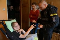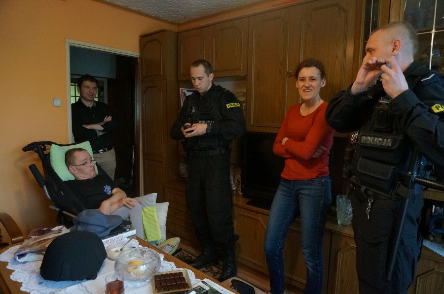 Dawid uczęszcza do szkoły w Wapienicy. Od lat poważnie choruje. Każdy jego dzień to pokonywanie trudności, w których z wielkim poświęceniem pomaga mu mama i wolontariusz Piotr. Jest pogodnym chłopcem, bardzo wrażliwym, z poczuciem humoru. Interesuje się wszystkim, co jest związane z policją. Jego marzeniem jest zostać policjantem. Zbiera emblematy, czapki i akcesoria policyjne. Ma nawet własne, policyjne koszulki oraz kolekcjonerską odznakę służbową. Jak tylko bielscy policjanci dowiedzieli się o życzeniu Dawida, postanowili je spełnić. Mundurowi z Grupy Szybkiego Reagowania Wydziału Prewencji odwiedzili Dawida w jego domu na bielskim osiedlu Złote Łany. Koledzy w mundurach pokazali sympatykowi policji wyposażenie i urządzenia wykorzystywane przez stróżów prawa w codziennej służbie. Dawid miał możliwość przymierzyć hełm, obejrzeć kajdanki, pałkę i broń służbową. Z uwagą wysłuchał opowieści policjantów o ich codziennej, trudnej służbie i jak sam przyznał, ma teraz nowych kolegów Przemka i Marka. Ten wyjątkowy dzień, zarówno dla Dawida, jak i policjantów, z którymi się spotkał na długo zapadnie w pamięci. Życzymy Dawidowi dużo zdrowia i uśmiechu, a także jeszcze wielu, wielu marzeń do spełnienia. Cieszymy się, że mogliśmy spełnić choć jedno z nich.