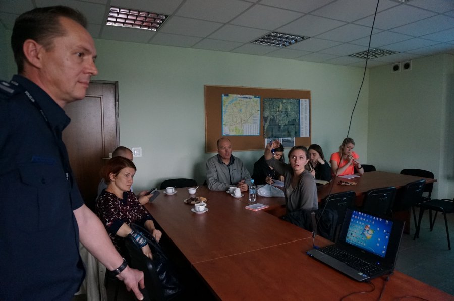 Wtorkowe przedpołudnie amerykańska delegacja spędziła w Jasienicy, gdzie w miejscowym komisariacie miała okazję zapoznać się ze strukturą Komendy Miejskiej Policji w Bielsku – Białej i podległych komisariatów, zakresem działania jednostki oraz zagrożeniami z jakimi zmagają się funkcjonariusze na terenie miasta i powiatu bielskiego. Na przykładzie komisariatu w Jasienicy poznali specyfikę pracy na poszczególnych stanowiskach służbowych, od komendanta poprzez dyżurnego jednostki po dzielnicowych i funkcjonariuszy pionu kryminalnego.