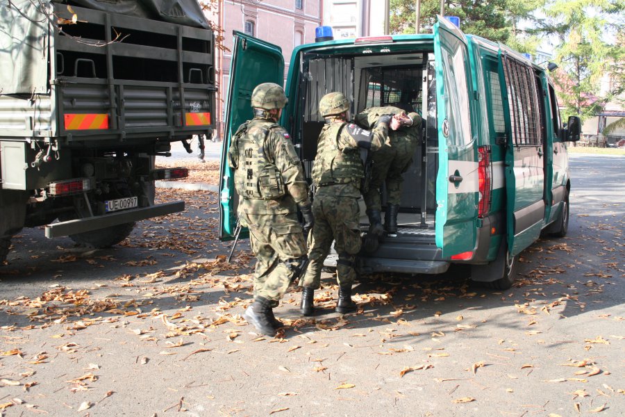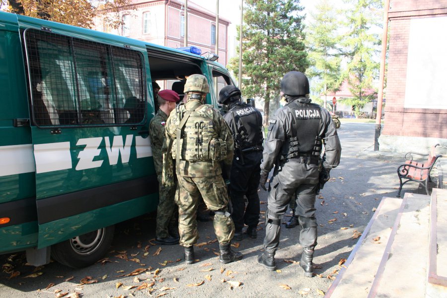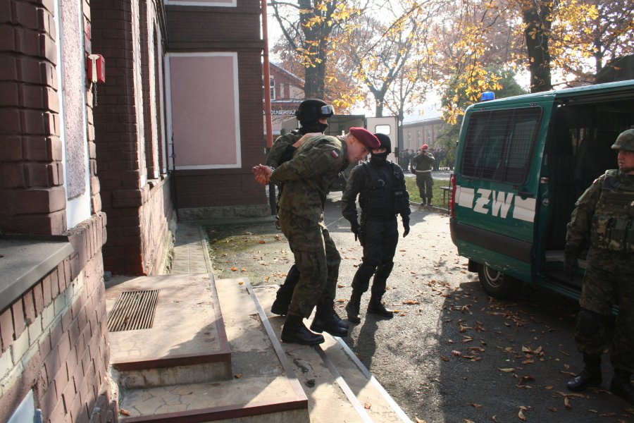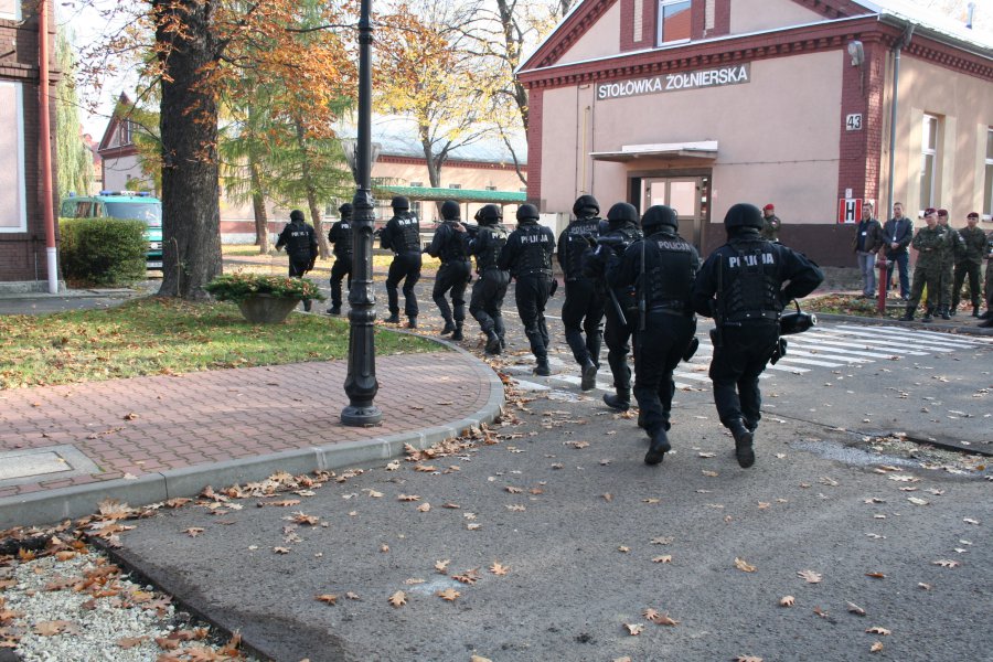 W piątek 30 października na terenie bielskiej jednostki wojskowej przeprowadzono ćwiczenia dotyczące pozorowanego naruszenia systemu ochrony, w którym udział wzięli również policjanci z Komendy Miejskiej Policji w Bielsku – Białej.