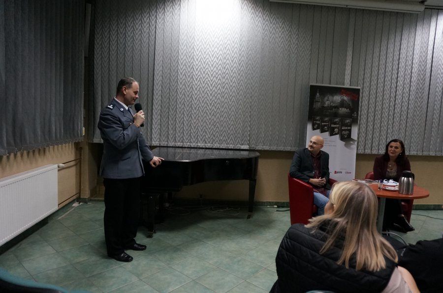 W Książnicy Beskidzkiej odbyło się spotkanie z autorem książki „Albatros i hiena”, której akcja osadzona jest w Bielsku-Białej. Gościem specjalnym Krzysztofa Marka Bąka był Zastępca Komendanta Miejskiego Policji w Bielsku-Białej mł.insp. Krzysztof Gałuszka, który podzielił się swoimi wrażeniami czytelniczymi. - Najważniejsze było dla mnie przekazanie emocji. Zarówno tych, które towarzyszą mundurowym, ale również innym ludziom - pokrzywdzonym, rodzinom ofiar. Praca policji pokazana jest od podszewki. Mój ulubiony fragment książki to pościg. Proszę mi uwierzyć, że naprawdę tak to wygląda - wyznał. Szczegóły związane z pracą w policji są bowiem oddane niczym w zwierciadle.