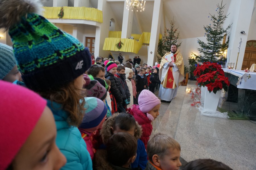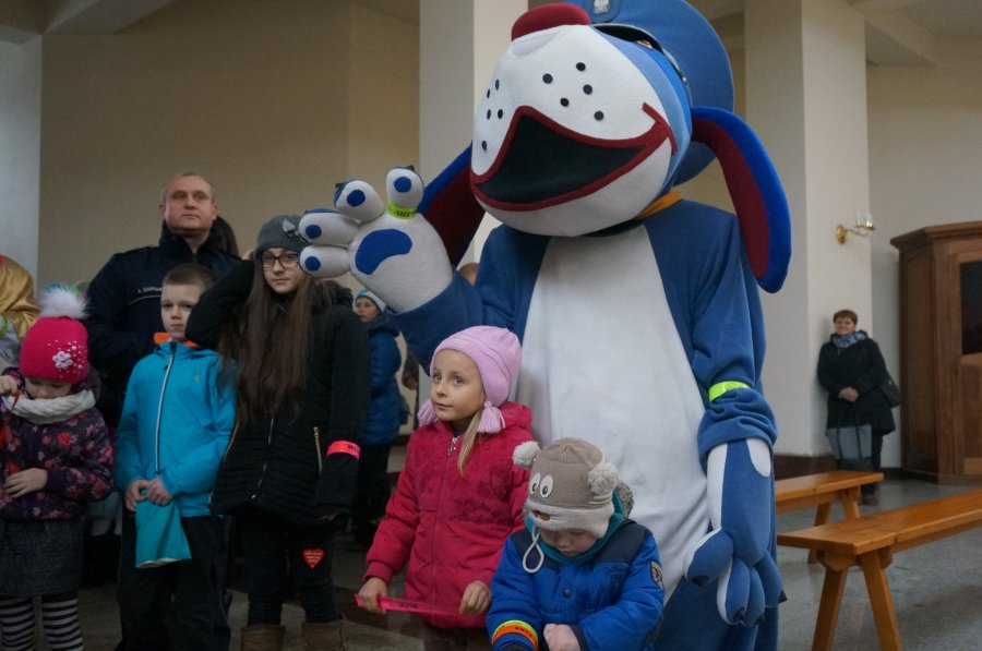 „Przyjmuję opaskę odblaskową i zobowiązuję się w obecności stróżów prawa i pieska Sznupka, że będę ją nosił, gdy będę poruszał się w ruchu pieszych po zmroku” - to słowa przysięgi, którą złożyli najmłodsi uczestnicy niedzielnego nabożeństwa w kościele pw. Św. Apostołów Piotra i Pawła w Szczyrku. Po mszy policjanci i księża, wraz z policyjną maskotką, rozdawali wiernym odblaski.