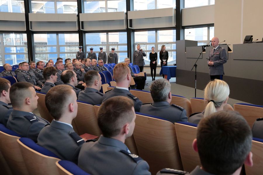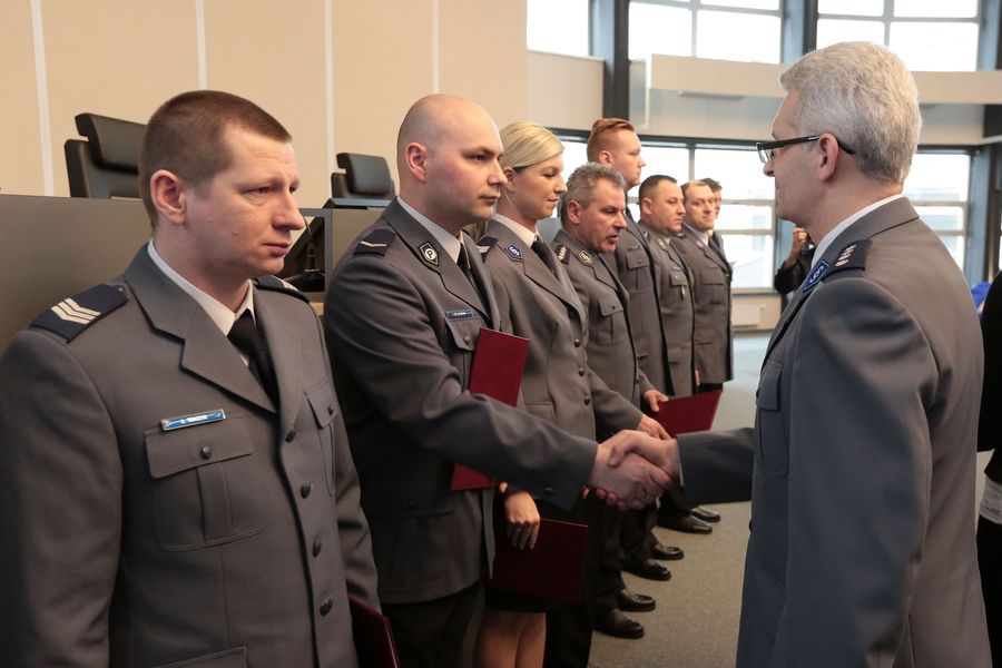 Komendant Jarosław Szymczyk wręczył listy gratulacyjne w asyście swojego zastępcy - nadkom. Mariusza Krzystyniaka. Podkreślił, że nagrody są wyrazem uznania za zaangażowanie w służbie i bardzo dobre wykonywanie codziennych zadań. Generał wskazał nagrodzonych policjantów jako wzór, tych, którzy powinni dawać innym policjantom przykład z jakim zaangażowaniem należy podchodzić do swoich obowiązków. Na zakończenie życzył policjantom wszelkiej pomyślności w życiu prywatnym oraz dalszych sukcesów na polu zawodowym, tak aby w podobnych okolicznościach - związanych z wręczeniem nagród - mogli się spotkać jeszcze niejeden raz.