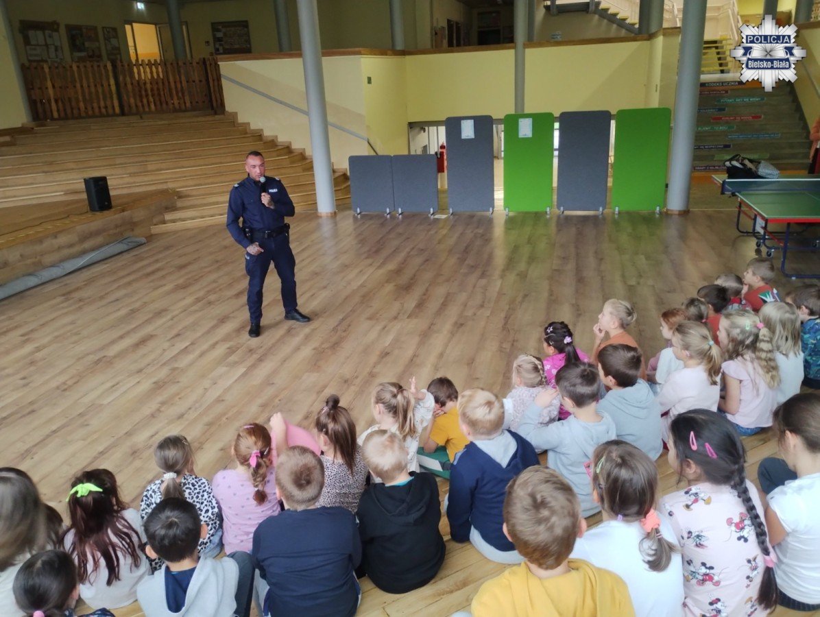 W tym tygodniu dzielnicowy z Komisariatu Policji II w Bielsku-Białej sierżant sztabowy Marcin Łuka, przeprowadził prelekcje w ramach akcji „Bezpieczna droga do szkoły”. Spotkanie odbyło się w Szkole Podstawowej nr 5 przy ul. Doliny Miętusiej w Bielsku-Białej.