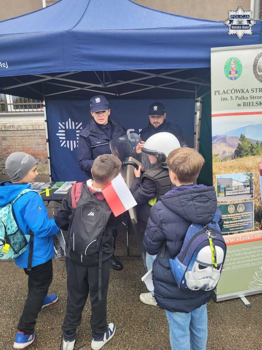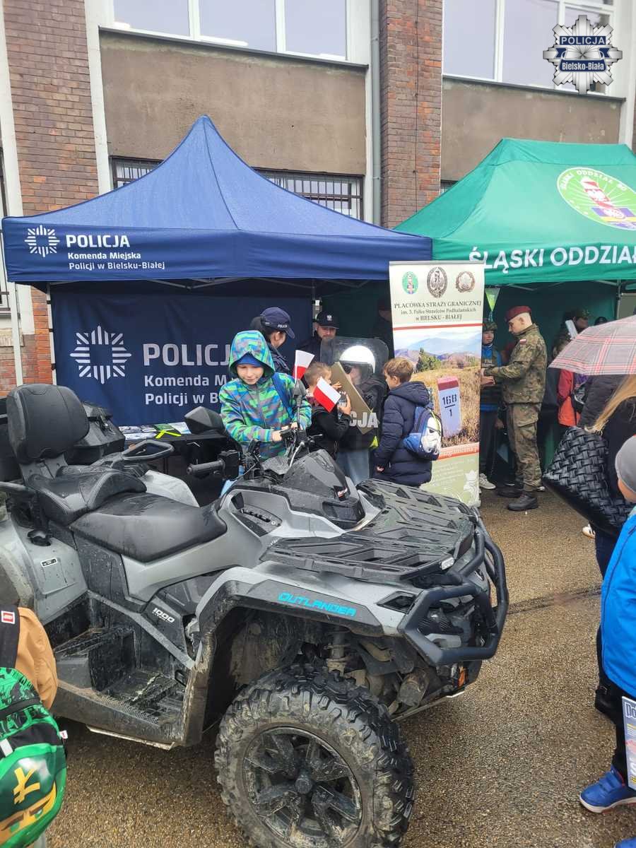 Prezentacją oraz przygotowaniem policyjnego sprzętu zajęli się profilaktycy z Komendy Miejskiej Policji w Bielsku-Białej, którzy chętnie rozmawiali z odwiedzającymi o bezpieczeństwie i codziennej służbie funkcjonariuszy.
