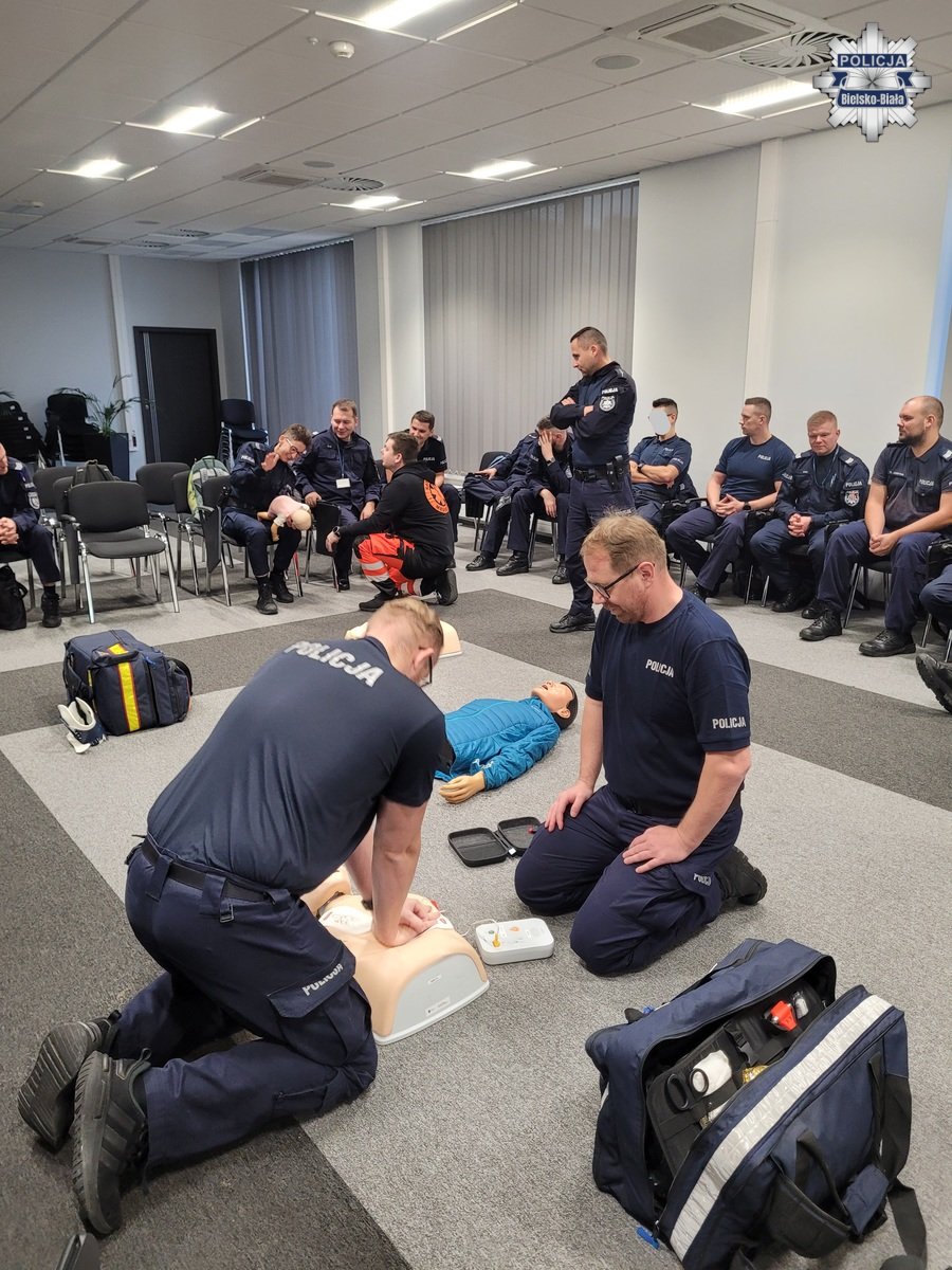 Zajęcia prowadził aspirant Bartosz Klimek policjant Samodzielnego Pododdziału Prewencji Policji w Bielsku-Białej. Dzięki jego doświadczeniu oraz profesjonalnemu podejściu do tematu, szkolenie zyskało wyjątkowo praktyczny wymiar. Policjanci ćwiczyli m.in. resuscytację krążeniowo-oddechową, tamowanie krwotoków, obsługę defibrylatora AED, a także działania w sytuacjach masowych zdarzeń.