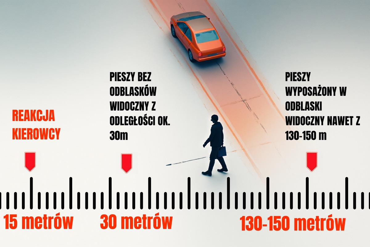 Jesienna aura wiąże się z wieloma wyzwaniami dla uczestników ruchu drogowego. Mgły, opady deszczu, a przede wszystkim coraz wcześniej zapadający zmrok ograniczają widoczność. W takich warunkach kierujący mają ograniczone pole widzenia, a piesi bez odblasków mogą pozostać niezauważeni aż do ostatniej chwili. Właśnie w tym okresie dochodzi do większej liczby wypadków i potrąceń z udziałem niechronionych uczestników ruchu drogowego. Element odblaskowy pozwala dostrzec osobę z odległości nawet 150–300 metrów, co daje kierowcy czas na bezpieczną reakcję. Te niepozorne drobiazgi mogą decydować o zdrowiu, a nawet życiu.