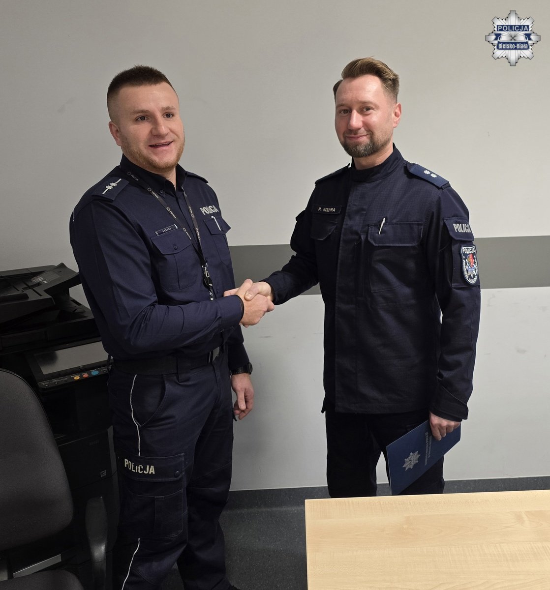 Spotkanie przebiegło w podniosłej, a jednocześnie serdecznej atmosferze, będąc ważnym momentem zarówno dla podkomisarza Przemysława Kozyry, jak i całej społeczności bielskiej komendy.