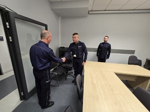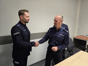 Podkomisarz Przemysław Kozyra, podziękował za zaufanie, wyraził wdzięczność przełożonemu oraz kolegom i koleżankom za ciepłe przyjęcie. W swojej wypowiedzi zwrócił uwagę na znaczenie współpracy, wzajemnego wsparcia i profesjonalizmu w codziennej służbie.