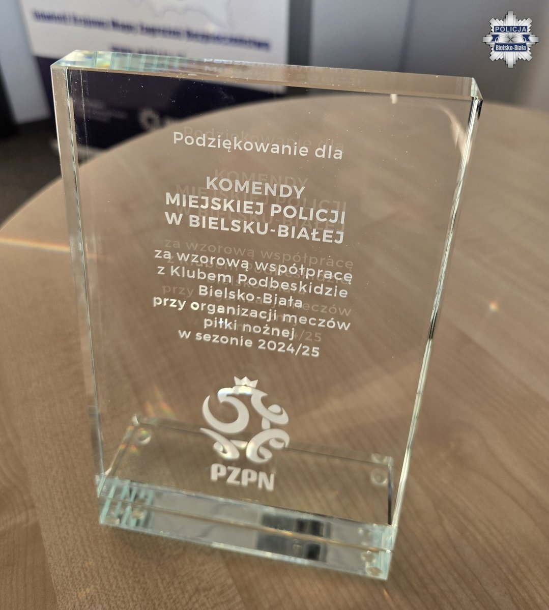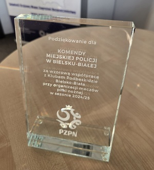 Komendant Miejski Policji w Bielsku-Białej otrzymał podziękowania od Polskiego Związku Piłki Nożnej. Wyróżnienie to stanowi wyraz uznania za profesjonalną współpracę z klubem TS Podbeskidzie Bielsko-Biała przy zabezpieczaniu i organizacji meczów piłki nożnej w sezonie 2024–2025.