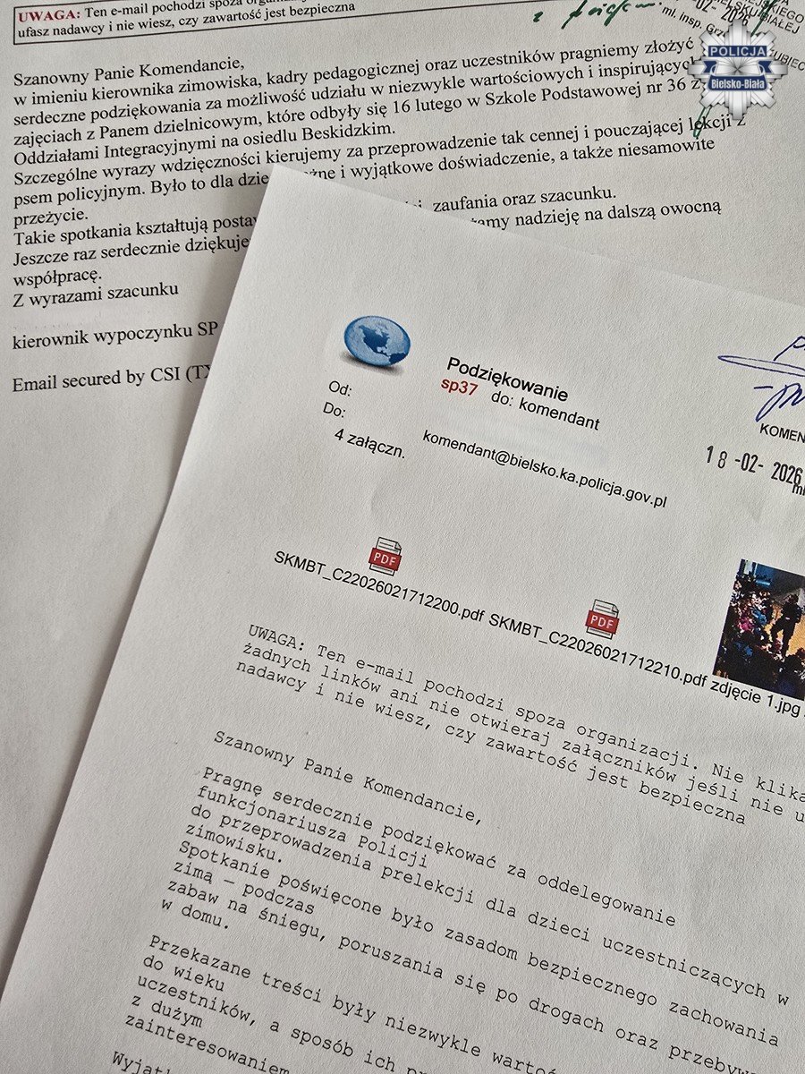 Policjanci z bielskiego garnizonu aktywnie uczestniczą w zimowiskach organizowanych w szkołach podstawowych, dbając nie tylko o bezpieczeństwo najmłodszych, ale także o zapewnienie im atrakcyjnych i wartościowych zajęć. Funkcjonariusze odwiedzili uczniów wypoczywających w Szkole Podstawowej nr 36 w Bielsku-Białej oraz Szkole Podstawowej nr 37 w Bielsku-Białej, które znajdują się w rejonie osiedla Beskidzkiego w Bielsku-Białej.