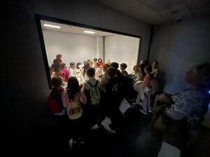 Nie zabrakło również wizyty w tzw. pokoju okazań. To właśnie tam uczniowie dowiedzieli się, w jaki sposób przeprowadza się okazania osób oraz jak działa lustro weneckie, które oddziela obserwujących od osób znajdujących się po drugiej stronie pomieszczenia.