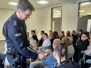 Uczniowie mogli dowiedzieć się, jakie wymagania trzeba spełnić, aby zostać policjantem, jak przebiega procedura naboru oraz jakie możliwości rozwoju zawodowego daje służba w tej formacji. Nie zabrakło także pytań ze strony młodzieży, na które policjant chętnie odpowiadał, dzieląc się swoim doświadczeniem.