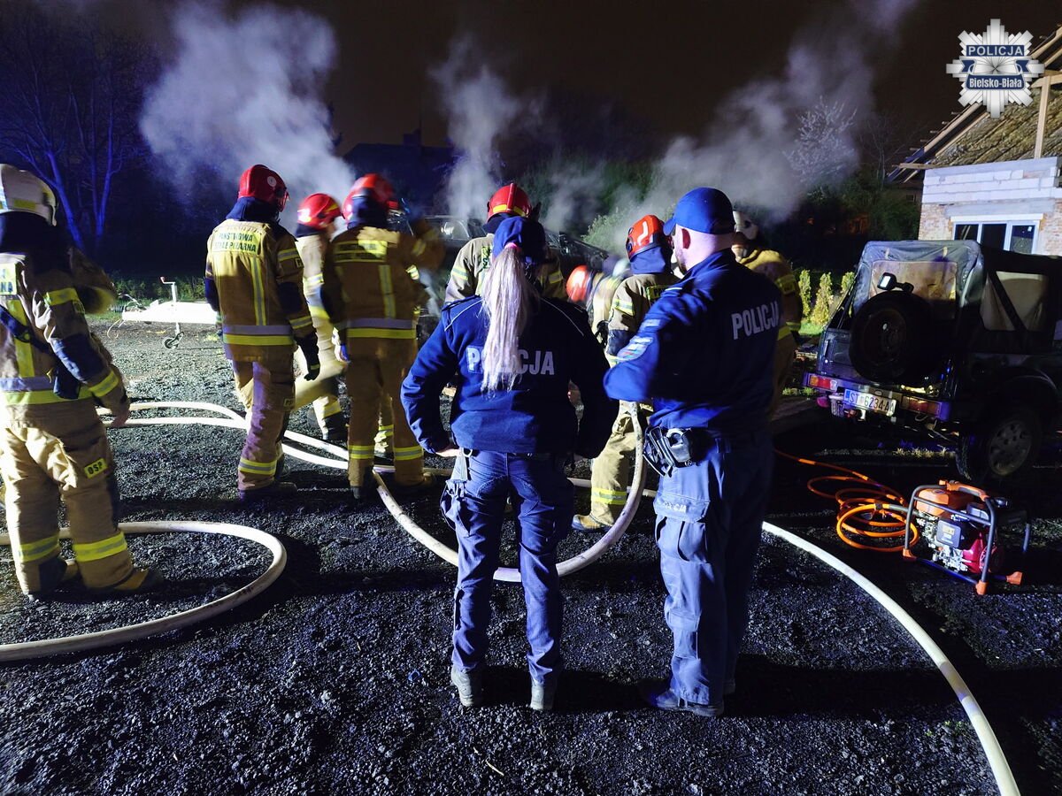 Pożar samochodu elektrycznego w Bielsku-Białej. Nocna akcja służb