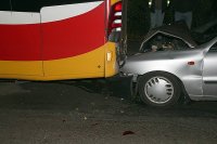 Policjanci z drogówki wyjaśniają okoliczności wypadku, do którego doszło w sobotni wieczór w Bielsku-Białej na ul. Cieszyńskiej, gdzie kierujący daewoo lanosem wjechał w autobus MZK.