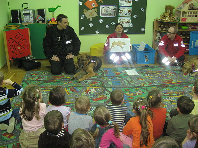 Policjant – przewodnik psa tropiącego wraz z autorami programu edukacyjnego FORGET-ME-NOT odwiedzają bielskie przedszkola i w ciekawy sposób edukują najmłodszych, jak bezpiecznie zachować się w kontakcie z obcym psem. Dzieci dowiadują się jak ostrożnie podejść do psa, w których sytuacjach nie należy tego robić, a przede wszystkim jak zachować się, gdy pies zaatakuje.