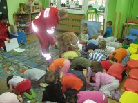Zajęcia te odbyły się ostatnio w Przedszkolu nr 52 w Bielsku-Białej przy ul. Morskie Oko 15. Mł.asp. Dariusz Popadyniec – przewodnik psa patrolowo – tropiącego z Wydziału Prewencji wspólnie z Tomaszem Wójcikiem i Darią Mierzwą – ratownikami PCK i jednocześnie autorami programu FORGET-ME-NOT uczyli dzieci bezpiecznych zachowań w kontakcie z obcymi psami. Dzieci poznawały między innymi mowę ciała psa, dawane przez zwierzę sygnały – strach, agresję, chęć zabawy. Dowiedziały się o czym należy pamiętać wychodząc z psem na spacer i jak bezpiecznie bawić się z czworonogiem. Poznały także role, jakie zwierzęta te jako przyjaciele człowieka odgrywają w społeczeństwie – służą wspólnie z policjantami, ratownikami, strażakami, pomagają w zajęciach terapeutycznych. I co najważniejsze, najmłodsi dowiedzieli się, jak bezpiecznie zachować się w kontakcie z psem i co robić, gdy pies już zaatakuje.