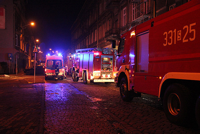 Pożar wybuchł tuż przed północą w jednym z pomieszczeń piwnicznych, gdzie noc spędzał poszkodowany mężczyzna. Z ustaleń wynika, że przyczyną pożaru mogła być niewłaściwa eksploatacja grzałki elektrycznej, która po stopieniu zapaliła odzież na śpiącym mężczyźnie. Poszkodowany doznał rozległych poparzeń ramion, pleców i nóg. Pogotowie przewiozło rannego do szpitala. Częściowemu spaleniu uległy także przedmioty składowane w piwnicy. Okoliczności w jakich doszło do zdarzenia bada bielska Policja oraz biegły z zakresu pożarnictwa.